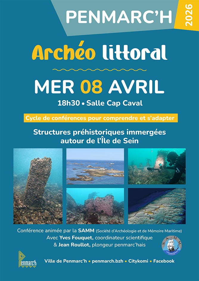 En pratique. Conférence archéo littoral : mercredi 8 avril 2026 à 18h30, salle Cap Caval. Ouverte à tous, entrée libre.