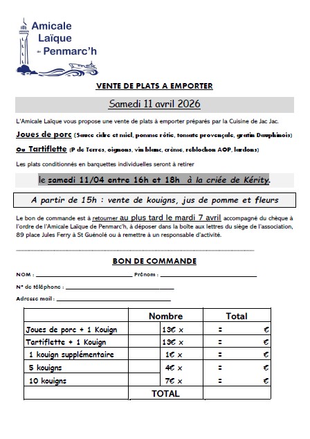 L’ALP (Amicale laïque de Penmarc’h) organise un repas à emporter au profit des deux écoles publiques de la commune.